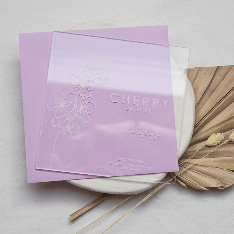 Geboortekaartje acryl Geboortebloem Kersenbloesem - maart