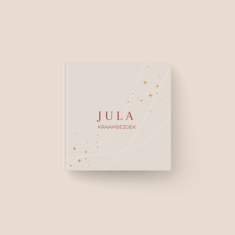 Ontwerp het kraambezoekboek met maan en sterretjes helemaal in je eigen stijl. Je kunt de gehele omslag van het boek helemaal naar wens aanpassen. Het boek heeft 30 bladen, dus 60 bladzijdes om in te vullen. De omslag is een mooie harde gelamineerde matte kaft waar geen foliedruk op mogelijk is. het formaat van het kraambezoekboek is 25x25 cm en de levertijd is 5 tot 6 werkdagen.