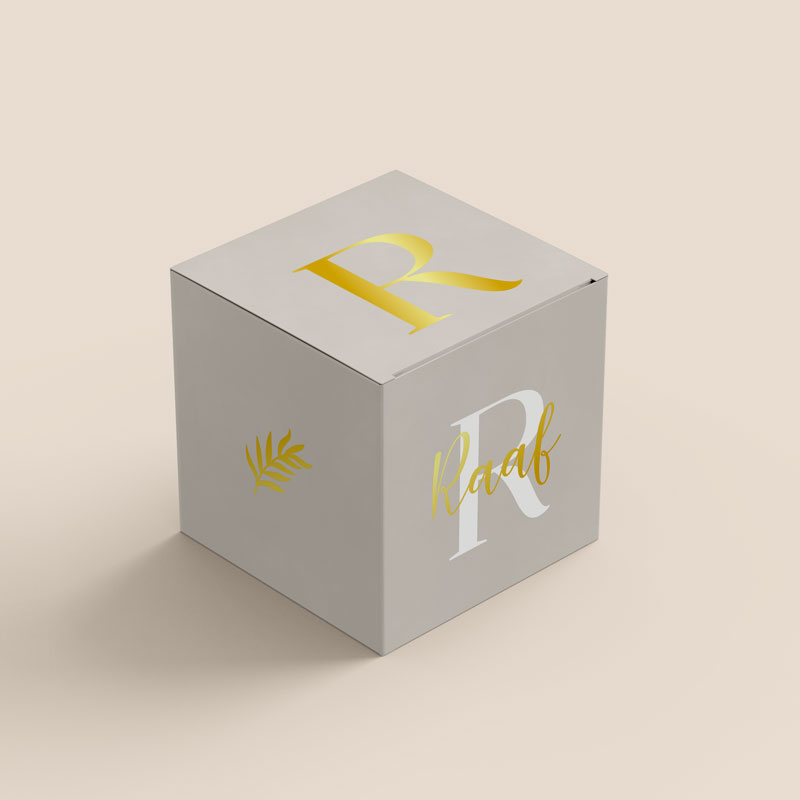 Dit prachtige doosje, met beige tint en goudfolie accenten, is perfect om doopsuikers in te verpakken.