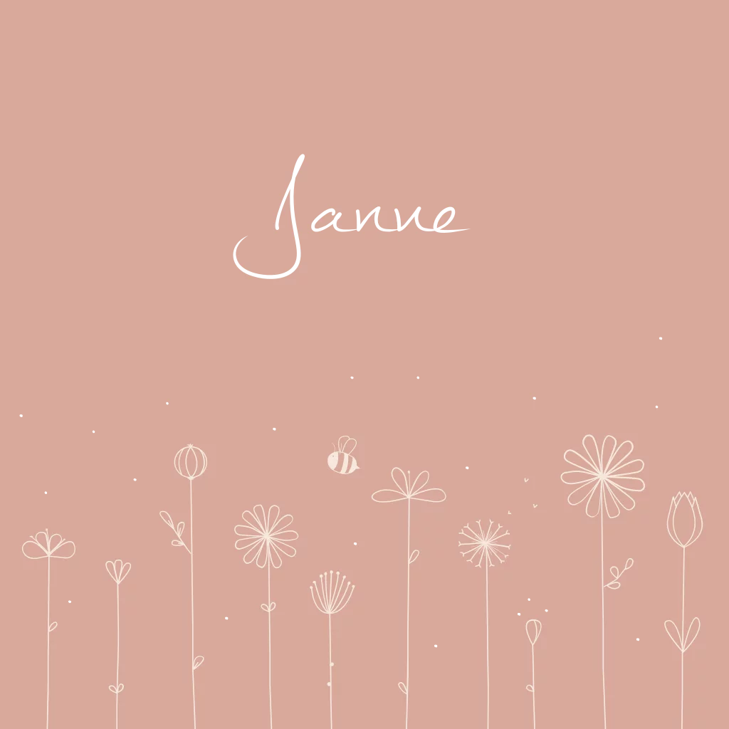 Ontwerp zelf het geboortekaartje voor jullie kindje. Een prachtig kaartje met handgetekende bloemen. Het lettertype en kleuren kun je zelf naar wens aanpassen. Prachtig op linnenpapier. Naam en spikkels zijn toegepast in goudfolie. Pas het lettertype of de kleur folie naar wens aan. De folie kun je aanpassen naar , roségoud-, zilver-, zwart folie. Prachtig op Linnen structuurkarton