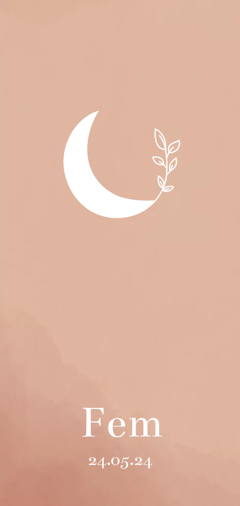 Ontwerp zelf het geboortekaartje voor jullie kindje. Een prachtig modern geboortekaartje voor een meisje. De voorbeeldnaam Fem, geboortedatum en maan illustratie zijn aangebracht in roségoud. Je kunt de kleur van de folie aanpassen naar zilver-, goud-, koper of zwartfolie. Mooi op linnen karton.