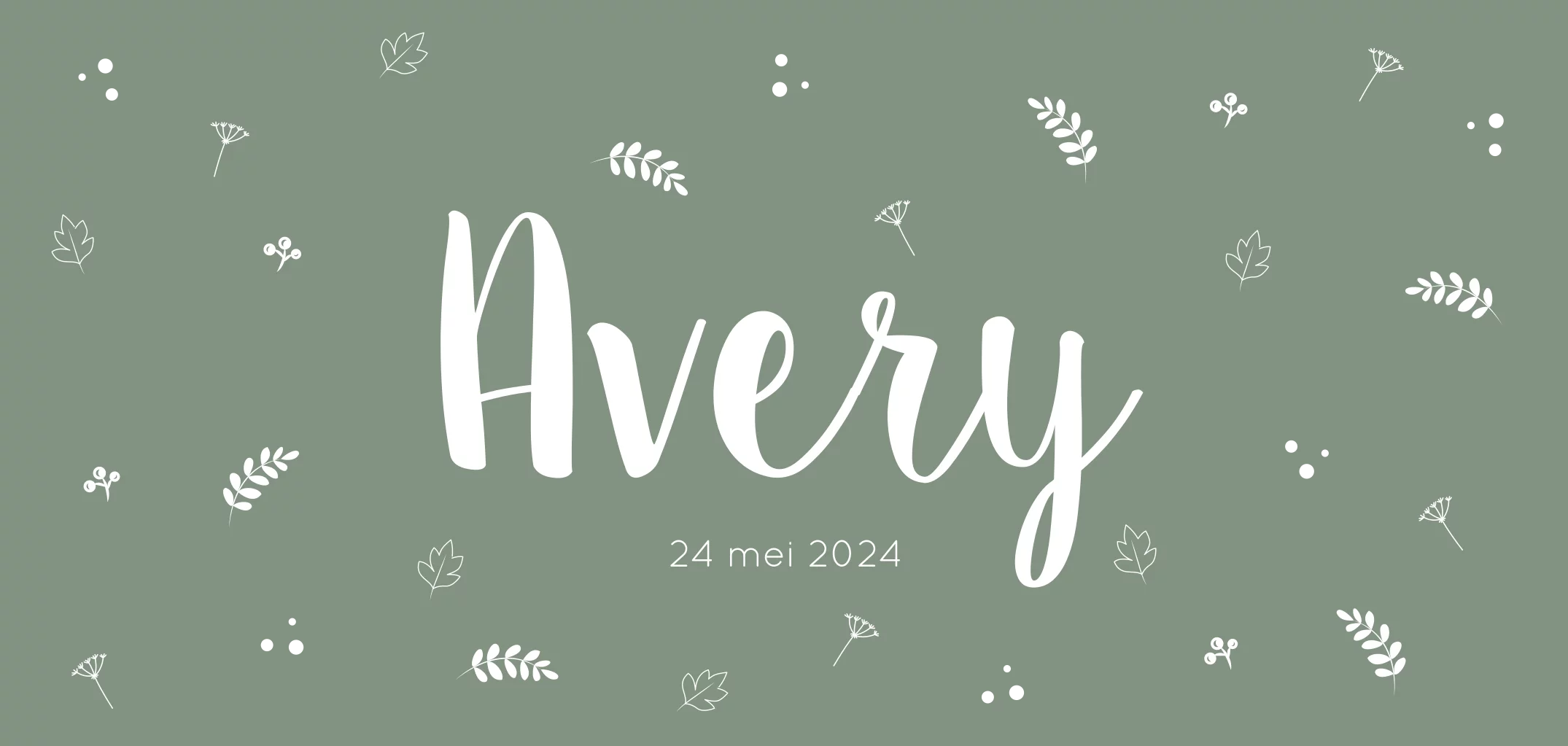 Ontwerp zelf het geboortekaartje voor jullie kindje. Een prachtig kaartje met geïllustreerde herfst elementen. De stipjes zijn aangebracht in zilverfolie. maar je kunt alle elementen aanpassen naar een foliedruk. Je kunt de kleur van de folie aanpassen naar roségoud-, goud-, koper of zwartfolie. Het lettertype en de achtergrondkleur kun je ook wijzigen. Prachtig op linnen karton.