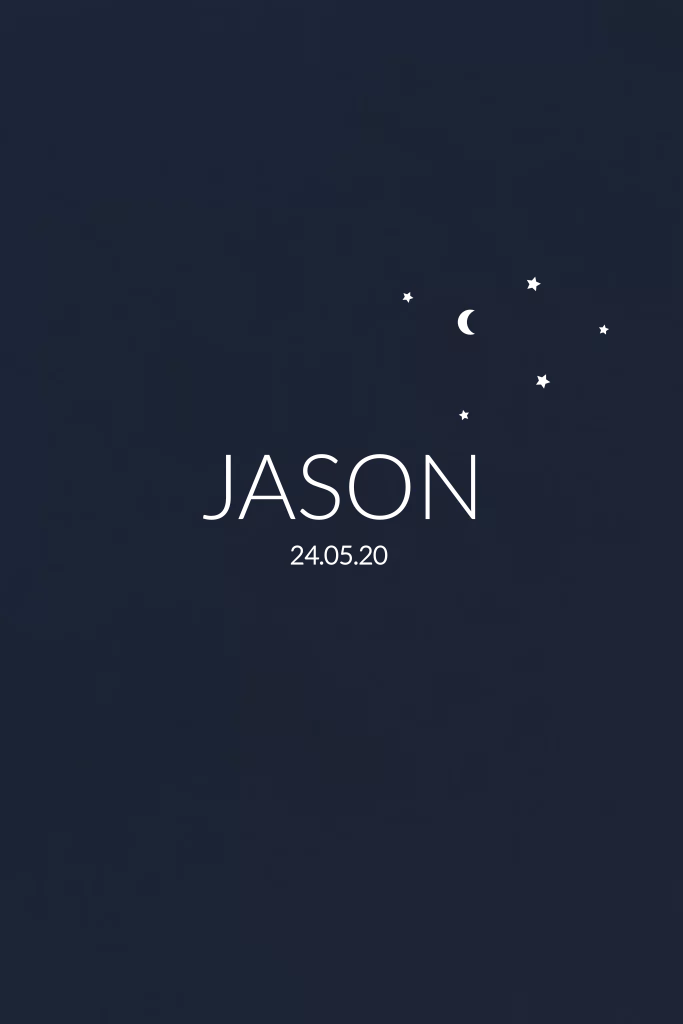 Ontwerp zelf het geboortekaartje voor jullie kindje. Een minimalistisch geboortekaartje met een nachtblauwe achtergrond. Naam, geboortedatum en illustraties zijn aangebracht in goudfolie. Je kunt de kleur van de folie aanpassen naar roségoud-, zilver-, koper of zwartfolie. Het lettertype en de achtergrondkleur kun je ook wijzigen. Prachtig op linnen karton.