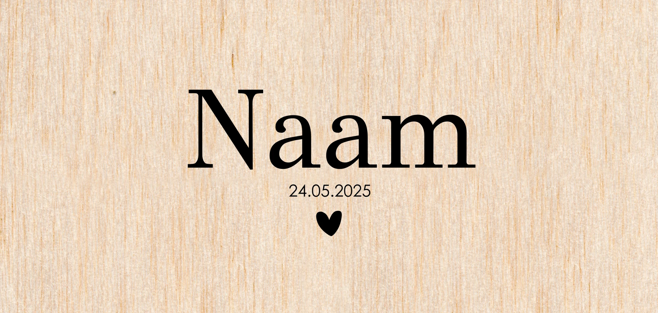 Hout is een natuurproduct. Daardoor is ieder geboortekaartje uniek en heeft zijn eigen nerven patroon. De nerf van het hout zal altijd verticaal lopen.