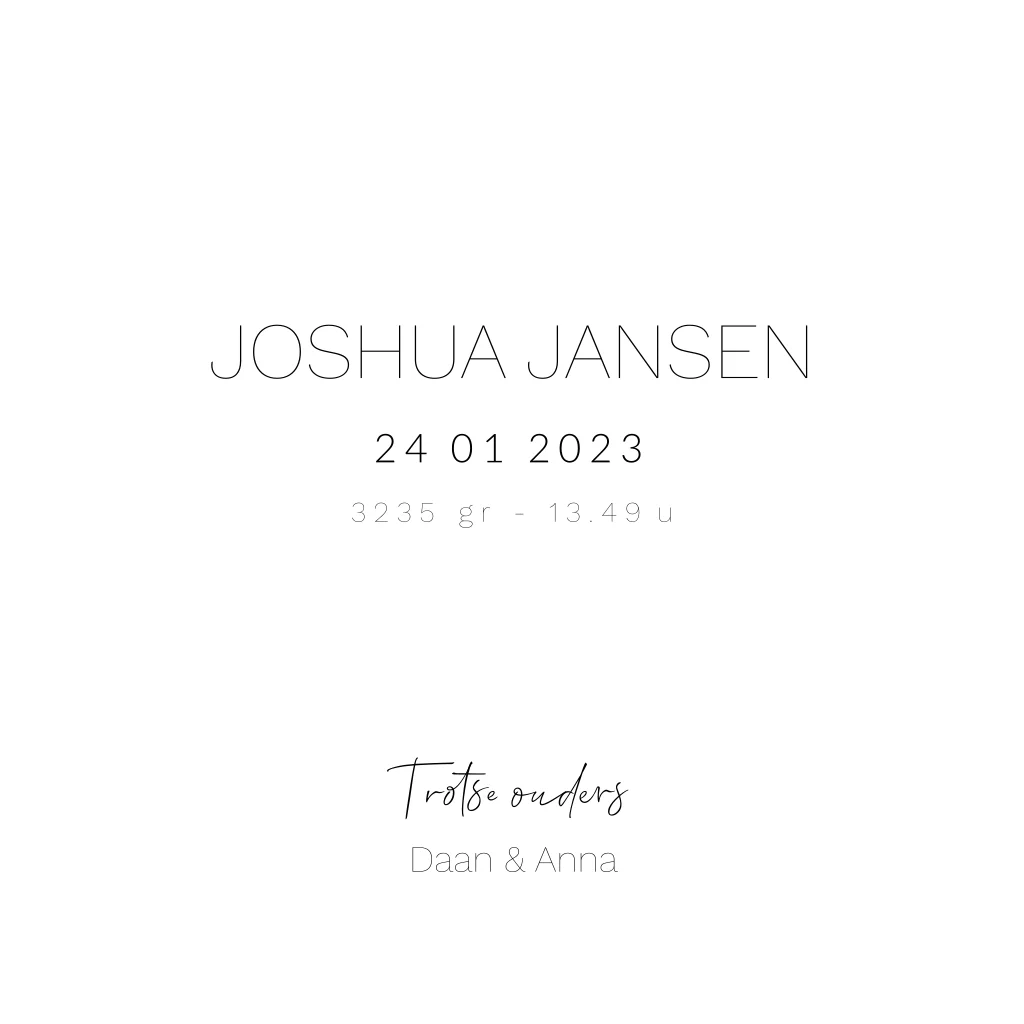 Wanneer je op zoek bent naar een prachtig en minimalistisch geboortekaartje, dan is dit groene geboortekaartje met goudfolie zon echt iets voor jou! Het kaartje is eenvoudig aan te passen naar jouw wensen en is gemaakt van een mooie groene velvetlook kleur. Deze luxe geboortekaartjes zijn een echte aanrader voor iedereen die op zoek is naar iets rustigs en simpels.