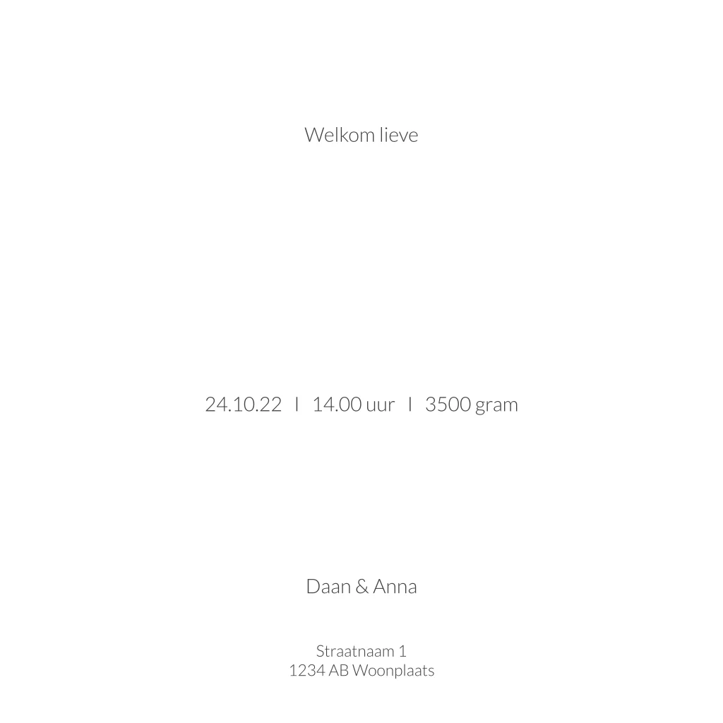 Ontwerp zelf het geboortekaartje voor jullie kindje. Dit minimalistische en genderneutrale geboortekaartje heeft folie aan de voorzijde van de kaart. De voorbeeldnaam Siebe en de hartjes zijn in goudfolie maar kun je zelf naar wens aanpassen. Ook kun je een achtergrond kiezen of het lettertype en kleur aanpassen. De folie kun je aanpassen naar roségoud-, zilver-, koper of zwartfolie.