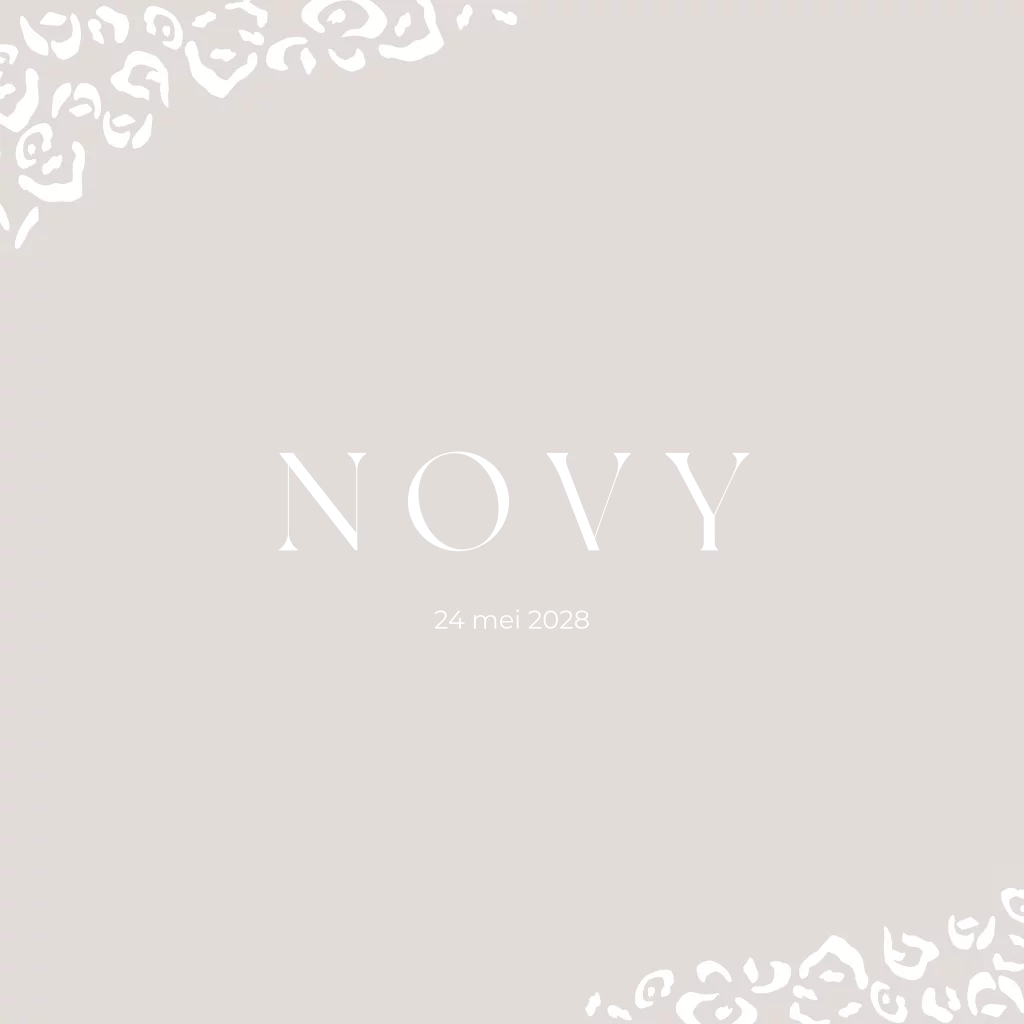 Je past het geboortekaartje volledig naar wens aan in onze online editor, zodat het precies bij jullie wensen aansluit. De naam Novy en de andere accenten zijn toegepast in goudfolie maar kan naar wens worden aangepast.
