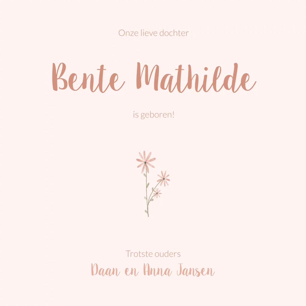 Ontwerp zelf het geboortekaartje voor jullie kindje. Een prachtig kaartje met geïllustreerde bloemen. Het lettertype en kleuren kun je zelf naar wens aanpassen. Prachtig op linnenpapier.