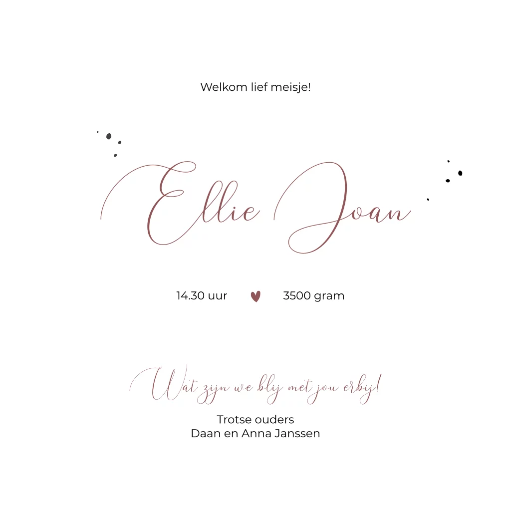 Dit prachtige geboortekaartje is ontworpen met liefde, perfect voor de aankondiging van jullie kleine meisje.