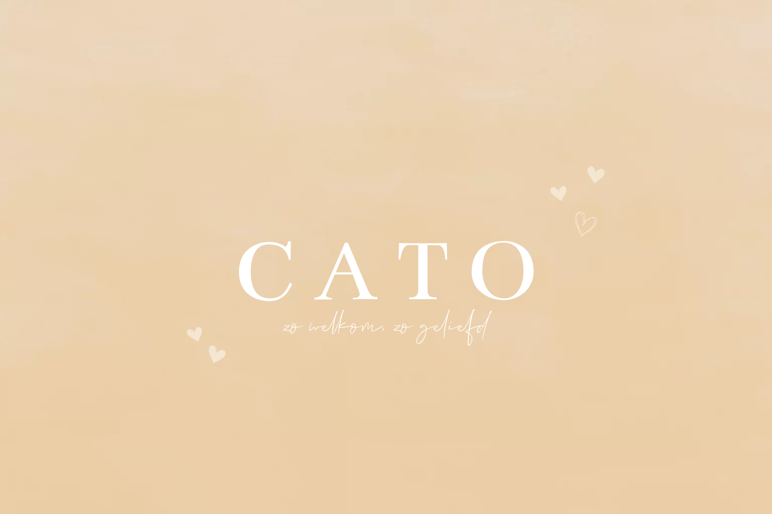 Op zoek naar een uniek en modern geboortekaartje voor jullie kindje? Dan is dit leuke geboortekaartje met hartjes en goudfolie zeker iets voor jou! De mostertgele watercolor achtergrond geeft het kaartje een prachtige uitstraling. De voorbeeldnaam Cato is toegepast met goudfolie, maar je kunt het geboortekaartje helemaal naar wens aanpassen.