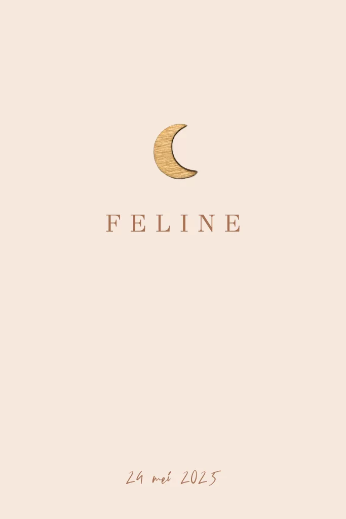 Minimalistisch geboortekaartje meisje met houten maantje