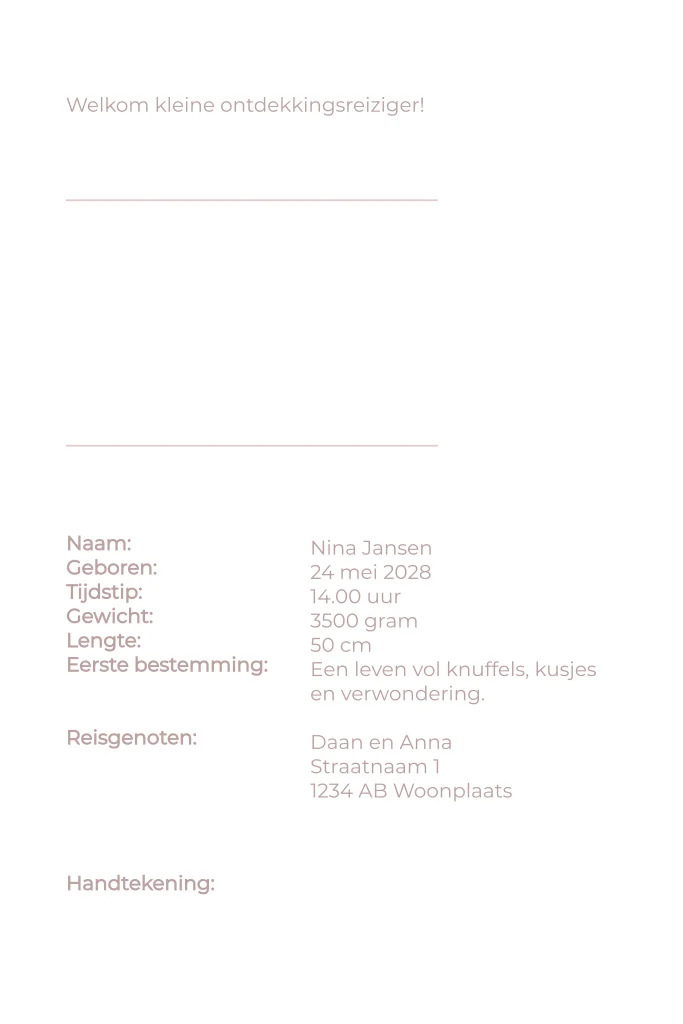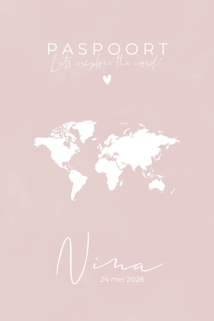 Dit stijlvolle paspoort geboortekaartje is perfect voor kleine wereldreizigers. De oudroze kleur in combinatie met glanzende zilverfolie maakt dit ontwerp warm, liefdevol en avontuurlijk tegelijk.