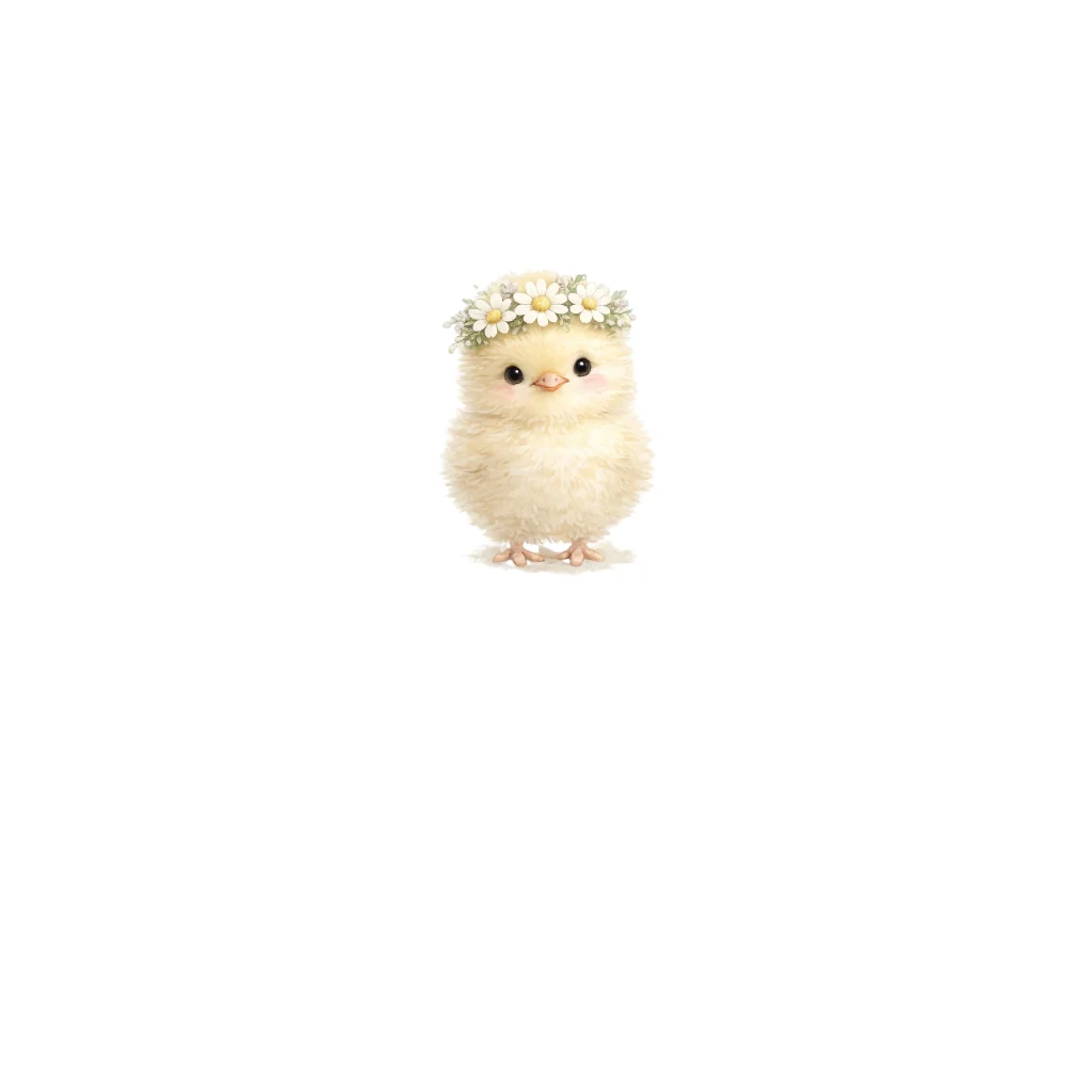 Dit lieve geboortekaartje voor een meisje straalt pure zachtheid uit. Het schattige kuikentje met een bloemenkransje geeft het ontwerp een speelse en tedere uitstraling, perfect voor een lente of zomer geboorte.