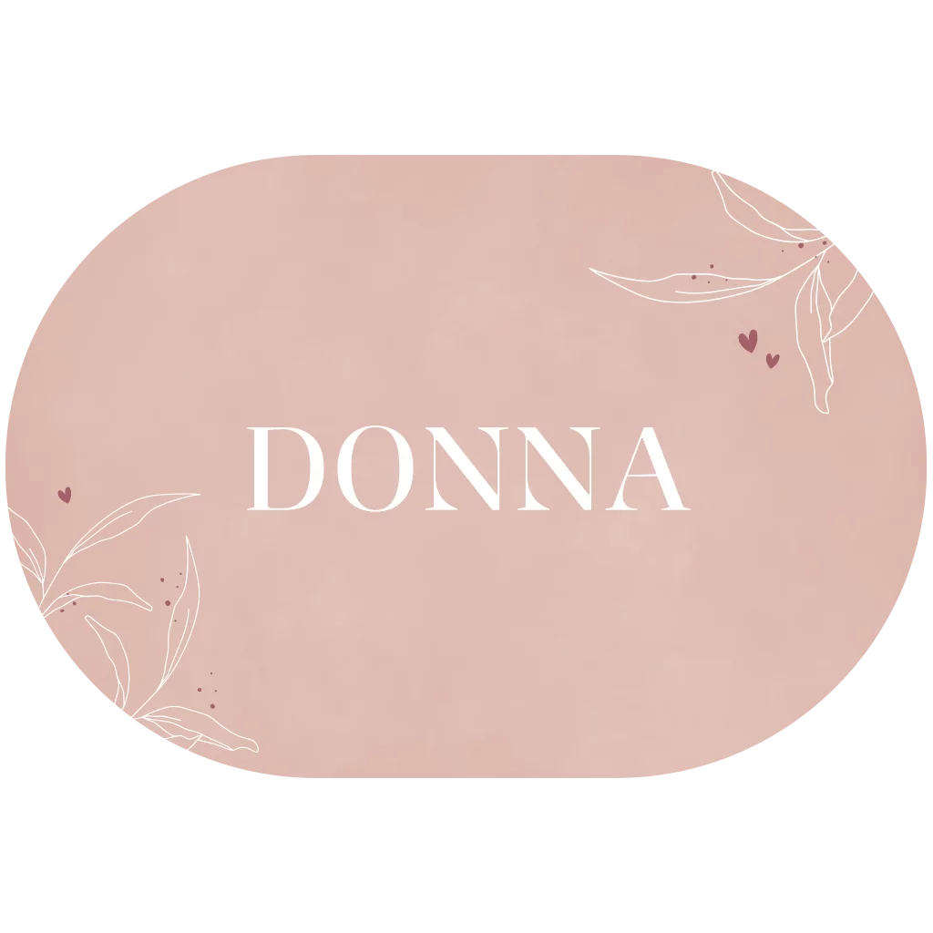 Geboorte tuinbord oudroze ovaal met bladeren en hartjes