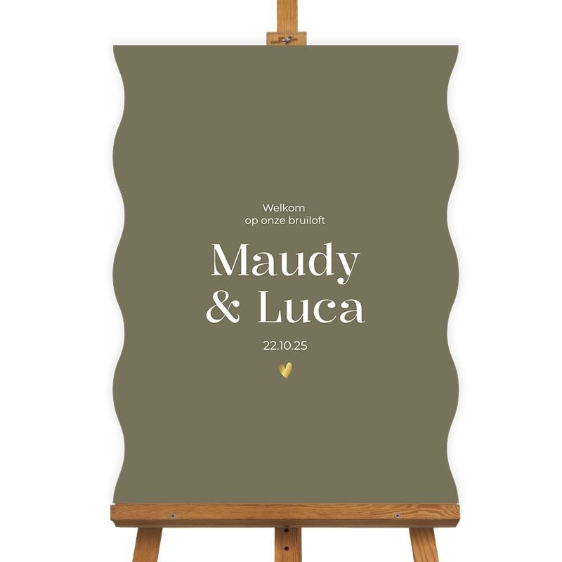 Welkomstbord Maudy & Luca – stijlvol, warm en uitnodigend.