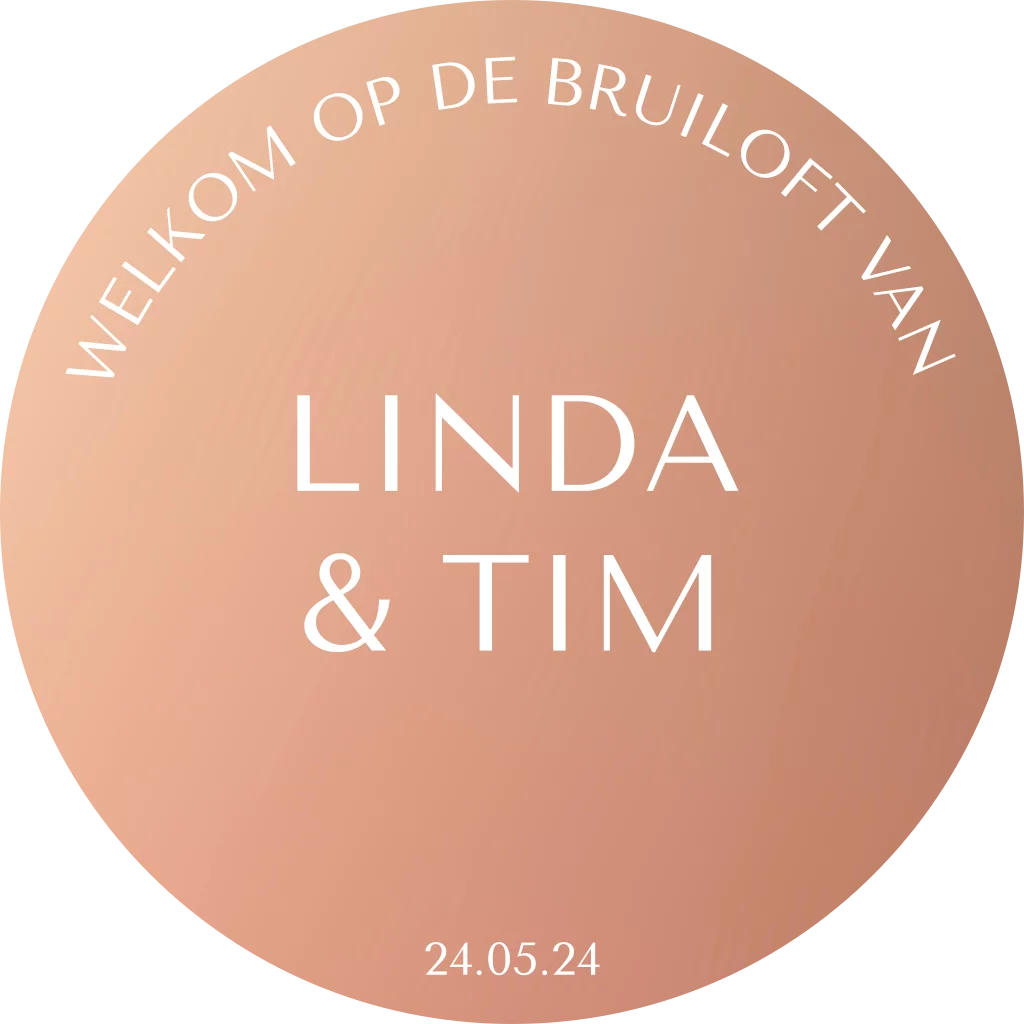 Heet je gasten welkom op jullie bruiloft met een modern rond welkomstbord, helemaal in stijl van je trouwkaarten en als onderdeel van je trouw huisstijl. Het lettertype, de achtergrond en kleur kun je naar wens aanpassen. Let op: de tekst 'welkom op de bruiloft van' kun je zelf niet aanpassen. Wil je hier graag een andere tekst of lettertype; stuur mij een bericht. Dit moderne weerbestendige welkomstbord is gemaakt van hard, stevig maar licht geschuimd PVC met een subtiele structuur. Dankzij de helder witte toplaag komt de print optimaal tot zijn recht. Het welkomstbord wordt binnen 3 werkdagen bezorgd.