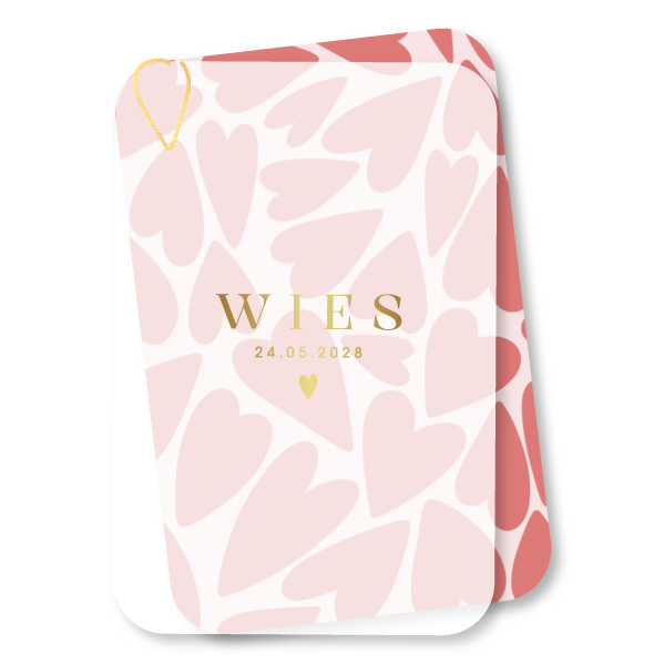 Vier de geboorte van je kleintje met dit prachtige colorblocking geboortekaartje. Dit bijzondere ontwerp bestaat uit twee lagen: een transparante kalkpapieren voorzijde bedrukt met subtiele hartjes en je baby’s naam in chique goudfolie, en een stevige achterkaart met alle geboortegegevens in een modern design.