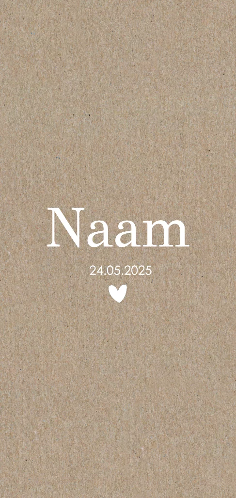 Ontwerp een langwerpig geboortekaartje of trouwkaart op kraft karton. Geef de kaart vorm met illustraties en achtergronden uit de beeldbank van de ontwerptool.