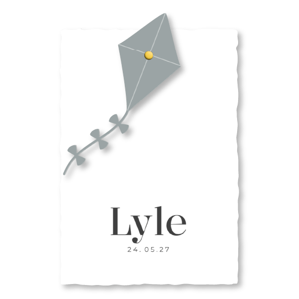 Ontwerp zelf een uniek geboortekaartje voor jullie kleine jongen. Dit moderne geboortekaartje heeft een handgeschept papier look en een leuke vlieger.