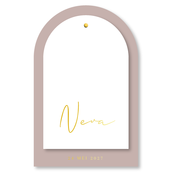 Vier de komst van jullie dochter met dit elegante geboortekaartje met goudfolie. De unieke boogvorm in zacht oudroze en de glanzende foliedruk maken dit kaartje een luxe en stijlvol geheel.