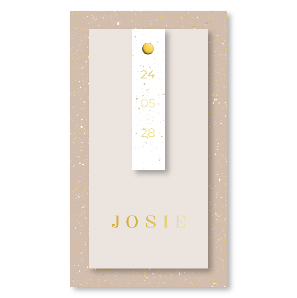Op zoek naar een uniek geboortekaartje voor je dochter? Ontwerp zelf je eigen label geboortekaartje in een prachtige oudroze kleur met gouden spetters.