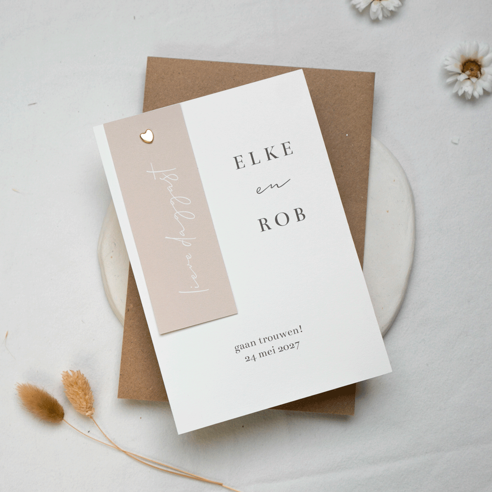 Minimalistische trouwkaart met label