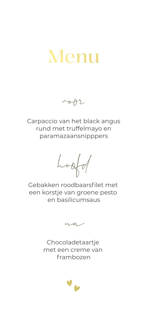 Menukaart Maudy & Luca – elegant, natuurlijk en verfijnd.