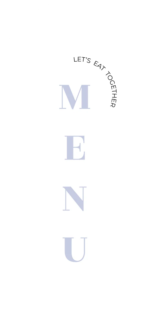 Deze elegante Iconic Love menukaart straalt rust en modern design uit door de combinatie van wit en zacht lila. De lange boogvorm en cleane typografie zorgen voor een minimalistische, luxe uitstraling op jullie dinertafels.