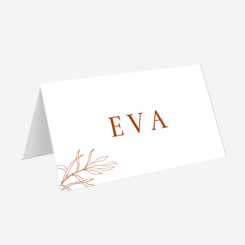 Communiceer duidelijk de zitplaatsen voor je diner met deze schitterende gevouwen naamkaartjes met een elegant takje. Pas de naamkaartjes naar eigen wens aan en stem ze af op de stijl van de trouwkaart voor een harmonieus geheel.