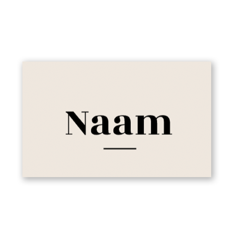 Met dit moderne Iconic Love naamkaartje voeg je op een subtiele manier moderne elegantie toe aan jullie tafelsetting. De beige kleur en zwart typografisch accent zorgen voor een strakke en tijdloze uitstraling.