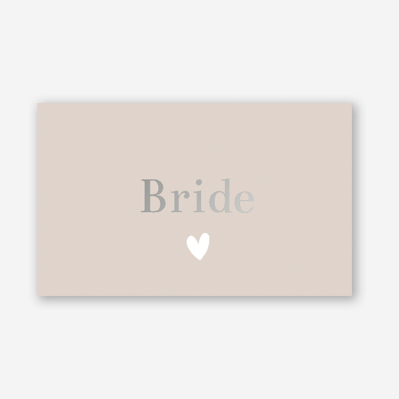Een prachtig nude naamkaartje met zilverfolie en een hartje als onderdeel van jullie trouw huisstijl. Communiceer duidelijk de zitplaatsen voor je diner met deze schitterende naamkaartjes.