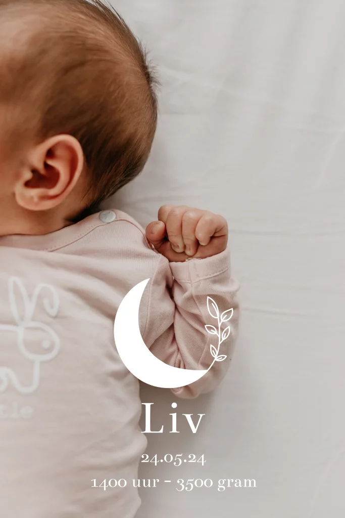 Ontwerp zelf je eigen poster. Een prachtige geboorteposter met de foto van het kindje. Een prachtig en uniek kraamcadeau voor in de woonkamer of babykamer. De achtergrond, lettertype en kleuren van deze poster kun je zelf naar wens aanpassen. Foto: Marloes van der Linde Fotografie.
