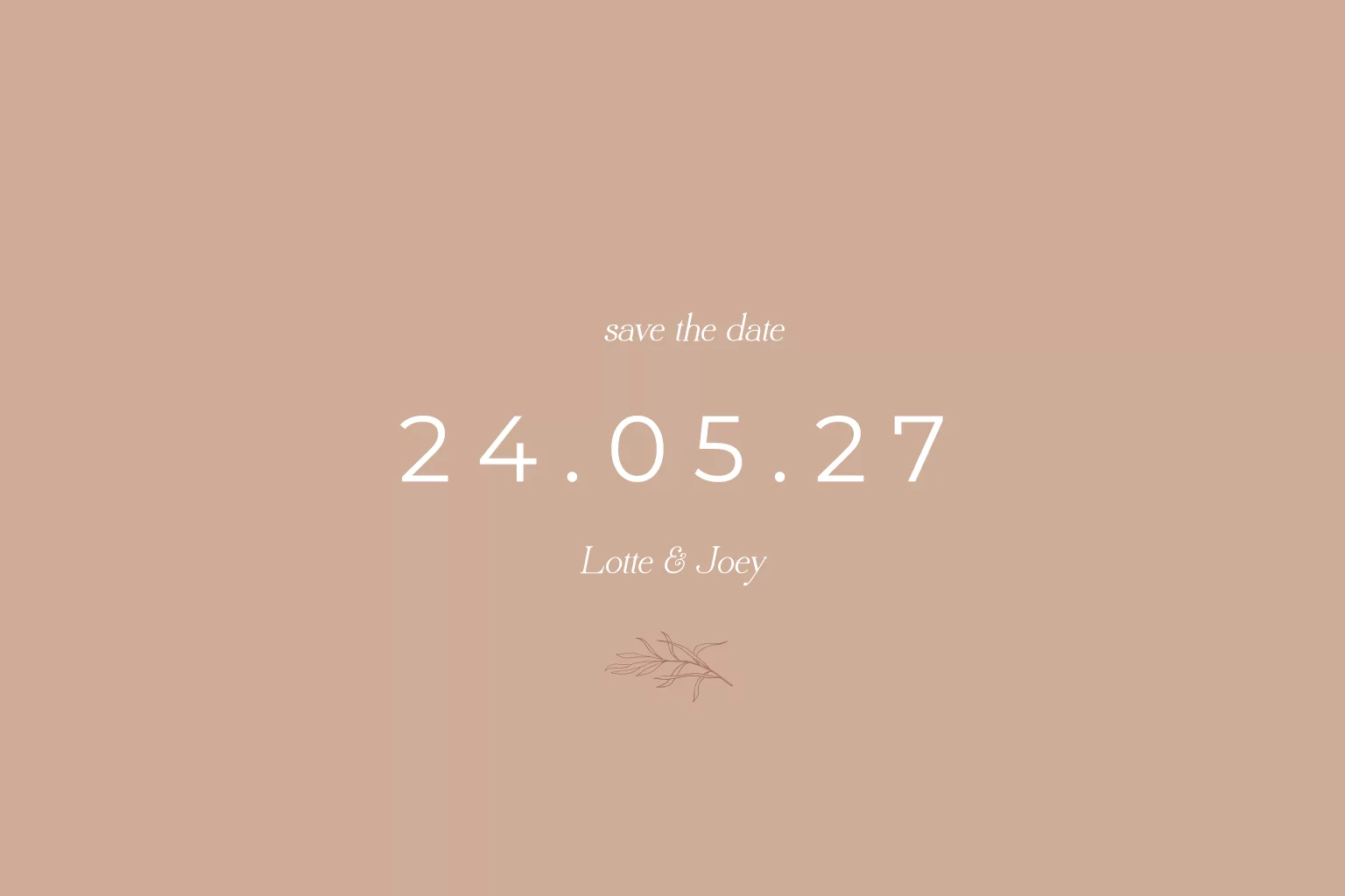 Laat je gasten weten dat jullie gaan trouwen en ontwerp zelf deze prachtige Save the date kaart als onderdeel van jullie trouwhuisstijl. De save the date kaart pas je eenvoudig naar wens aan in de online kaarten editor