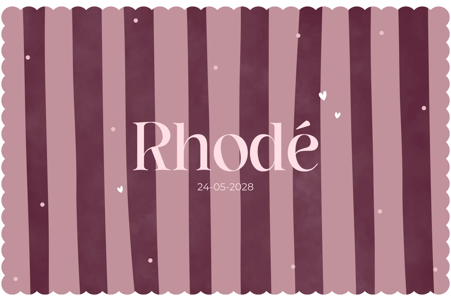 Dit geboortekaartje in warme roze en rood tinten is dé trend van dit moment! De combinatie van speelse strepen, een elegante boogjesrand en zachte roze kleuren maakt dit kaartje een echte eyecatcher voor de geboorte van jullie dochter.