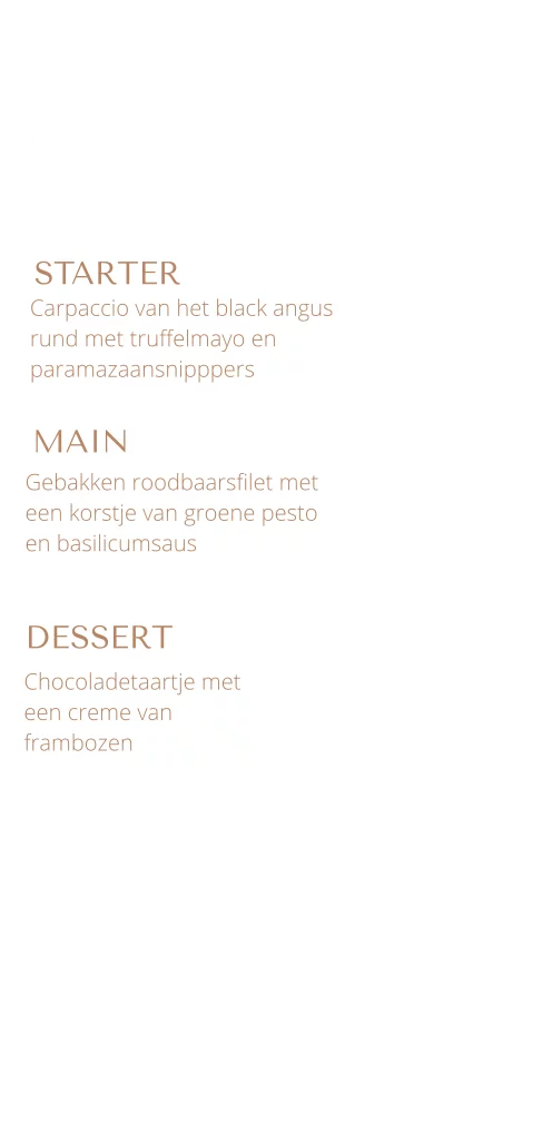 Een minimalistische moderne menukaart. Personaliseer de menukaart met een halfronde label en bijpassend lintje., touwtje of paperclip. et lettertype en de achtergrondkleur van de menukaart kun je naar wens aanpassen.