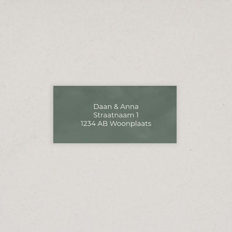 Ontwerp deze donkergroene adresstickers met wolkjes helemaal zelf, zodat ze perfect aansluiten bij jullie trouwkaart of geboortekaartje.