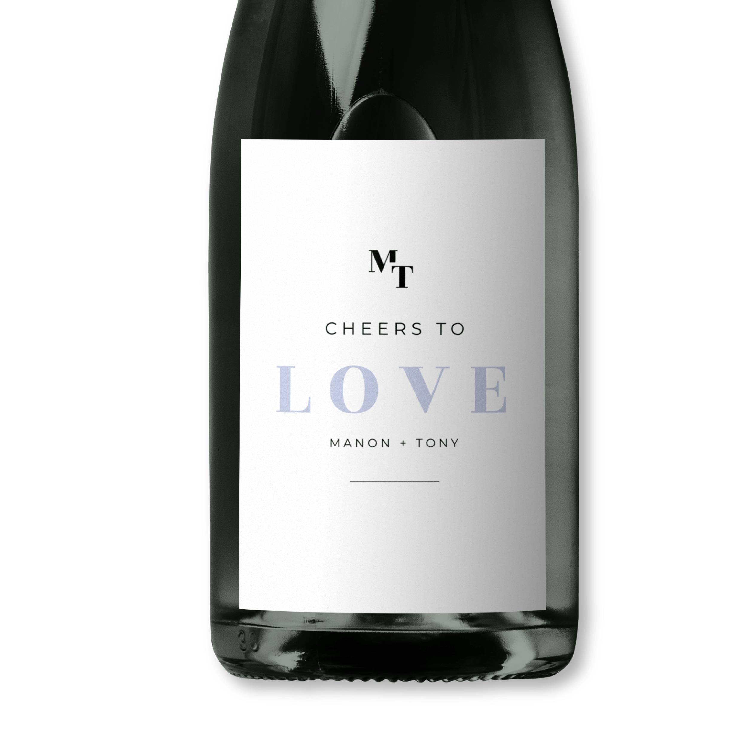 Vier jullie liefde in stijl met deze moderne Iconic Love champagne etiketten. De combinatie van wit, en lila typografie geeft de etiketten een frisse, eigentijdse uitstraling.