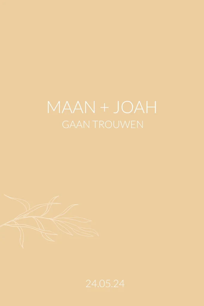 Een prachtige moderne trouwkaart met ronde hoeken in een warme, zachte gele aarde tint. Het lettertype en de achtergrondkleur kun je naar wens aanpassen. Prachtig op Oud Hollands papier.
