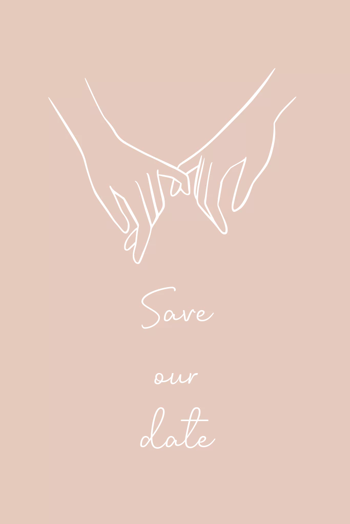 Laat je gasten weten dat jullie gaan trouwen met deze minimalistische save our date kaart in een zachte oudroze kleur met een line art illustratie. Je kunt de kaart helemaal naar wens aanpassen.